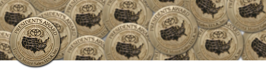 “Each year Toyota Motor Sales recognizes its finest dealerships with the prestigious President’s Award. The President’s Award honors Toyota dealers that excel in all facets of their operations. It is recognition for dealerships that continue to go above and beyond at each customer touch point and represent the best of the best.”